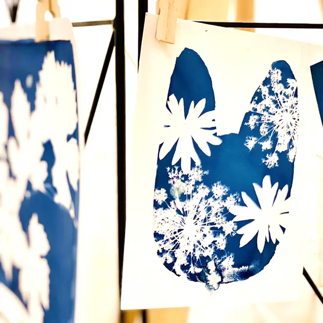 Le cyanotype est un procédé d'impression photographique qui produit une impression de couleur cyan grâce au soleil. Découverte et conseils des principes de compositions, choix des supports... Préparation des mélanges et des supports. Vous pouvez apporter des objets et autres végétaux. Plusieurs tirages seront réalisés. Attention l'atelier peut être reporté en cas de mauvaise météo ! Atelier réalisé avec Caroline, illustratrice jeunesse - Jus de carotte