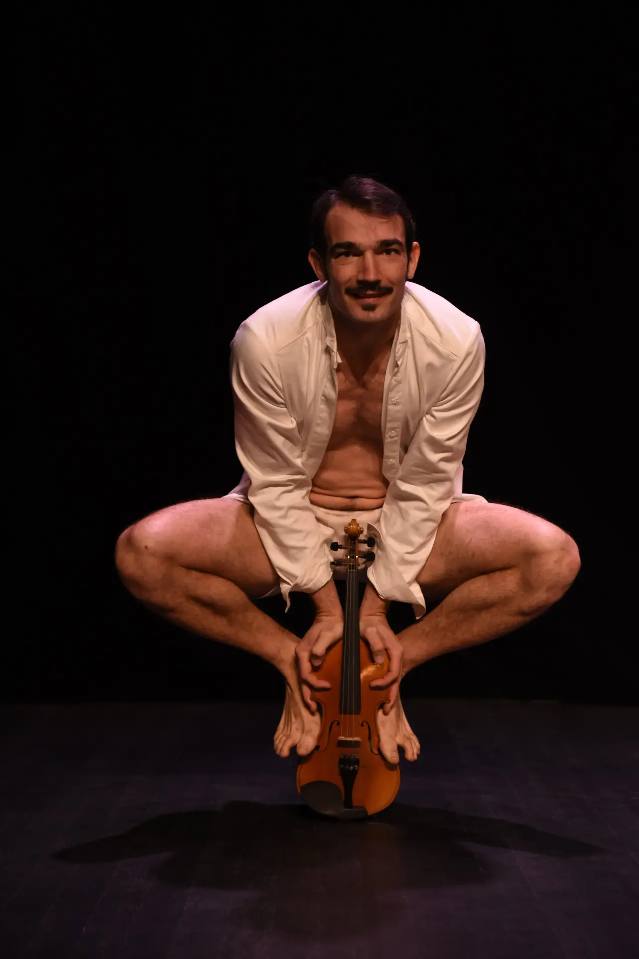Le spectacle se résume, peut-être, à suivre les pérégrinations physiques, mentales et émotionnelles d’un personnage à l’image de son violon, capable de fougue et d’une puissance hors du commun, mais à la fois terriblement fragile et sensible, essayant de jouer Carmen où le comique mène à la tragédie, où la fatalité est la clef, et la liberté l’enjeu principal.