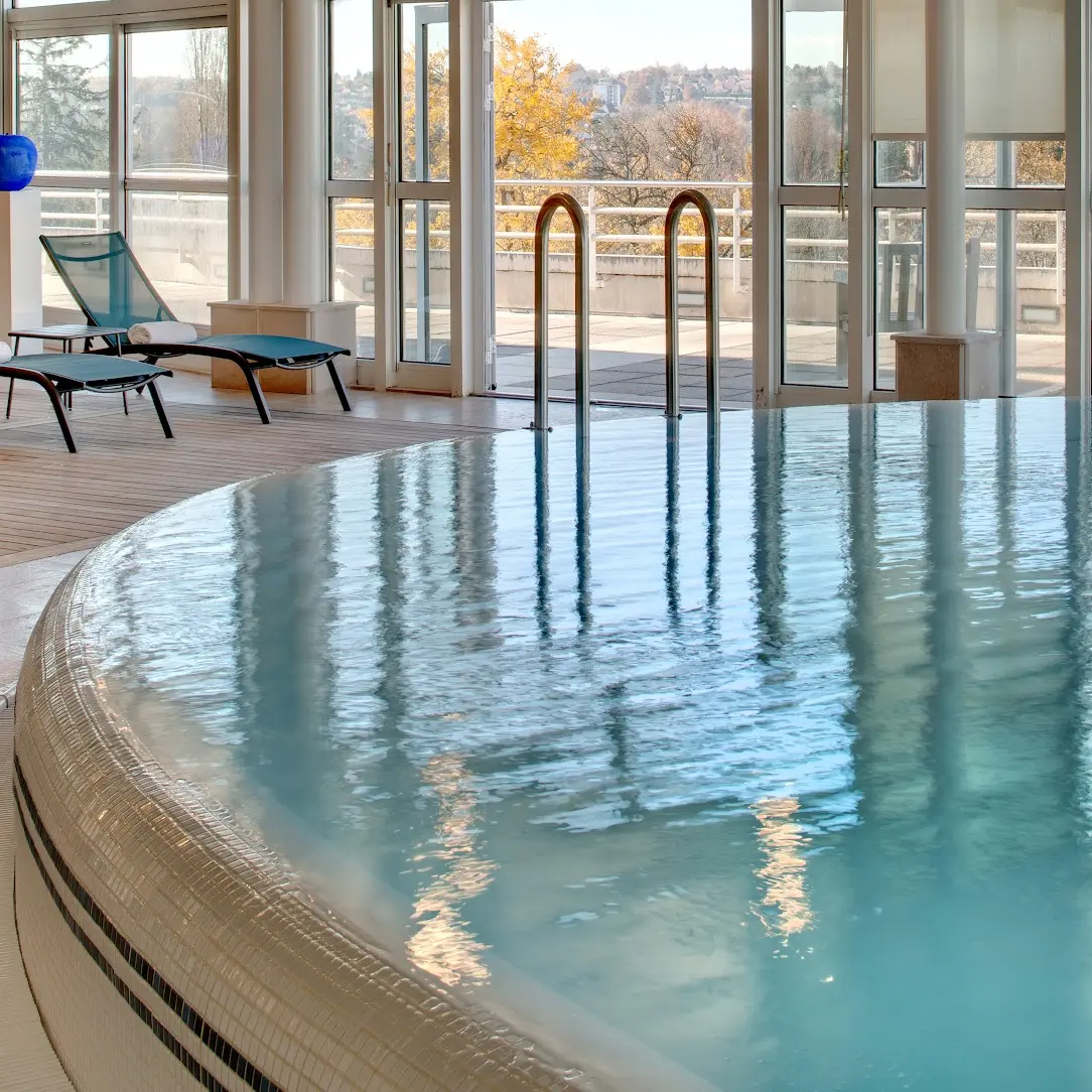 Le confort et le raffinement d’un hôtel 5 étoiles moderne, d’inspiration néo-classique, relié par une passerelle ouverte au Célestins Spa Thermal.