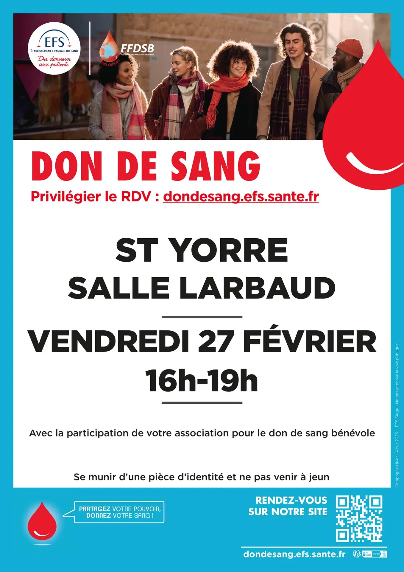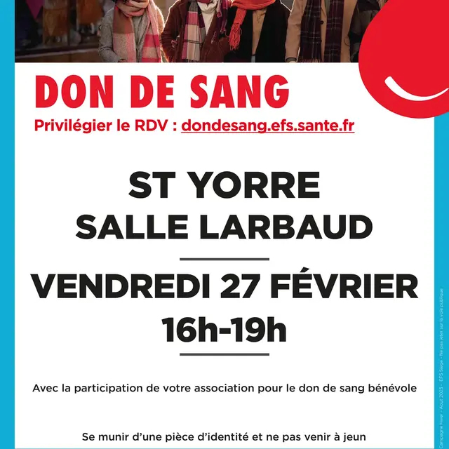 Munissez vous d'une pièce d'identité. Hydratez vous bien avant de venir.