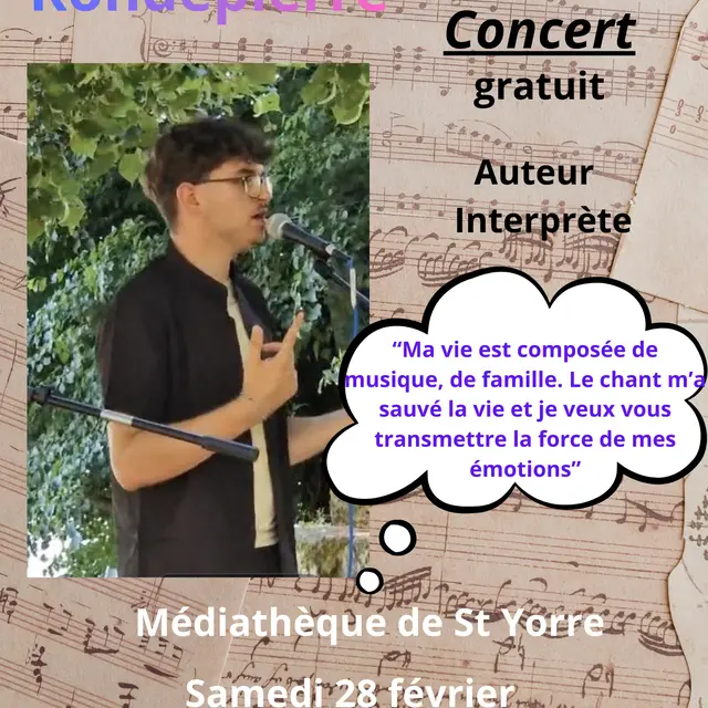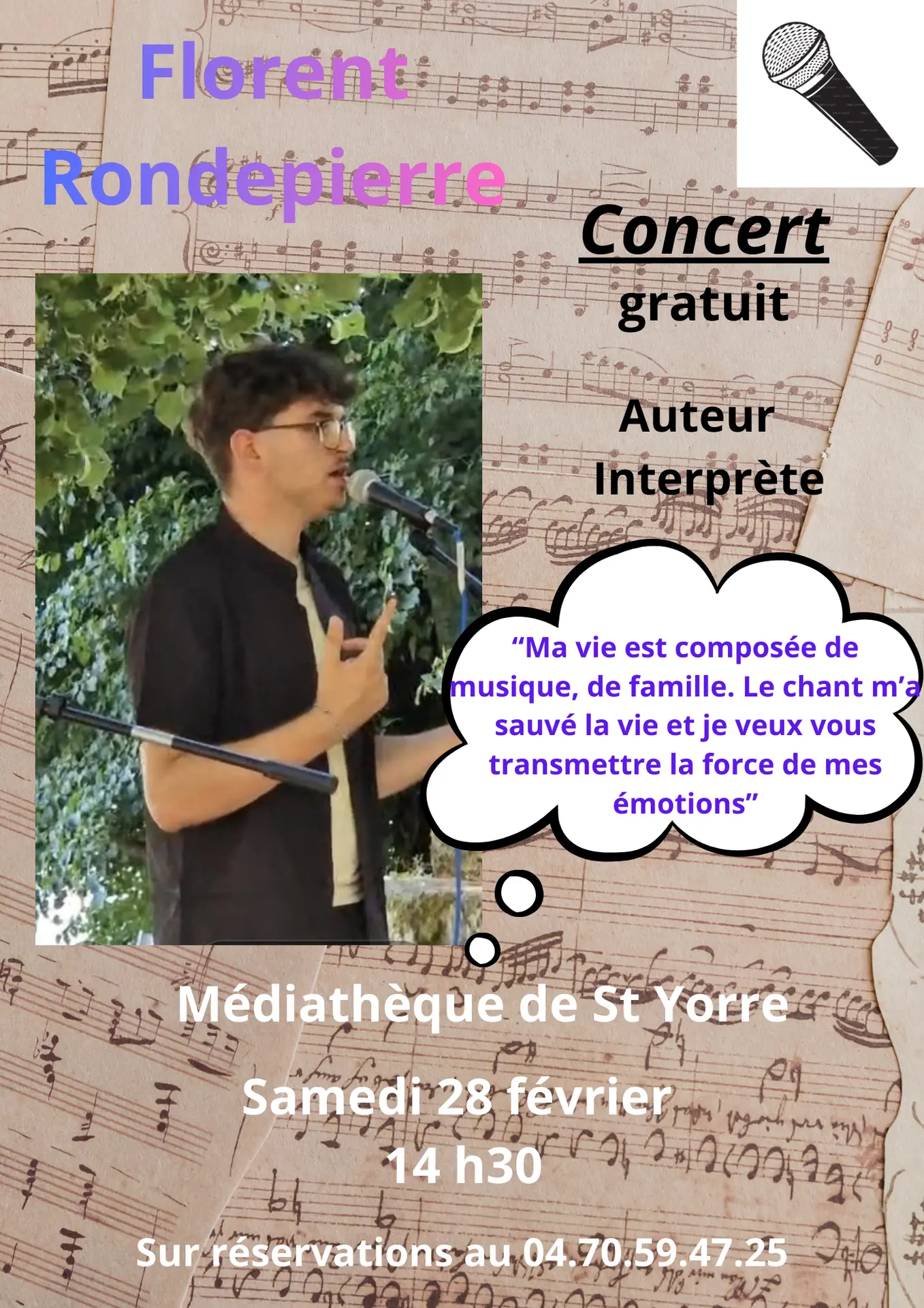 Florent Rondepierre, jeune Bussetois de 18 ans, chantera quelques une de ses compositions et surtout des reprises de chanteurs connus. Il chante pour nous transmettre des émotions grâce à sa voix de Ténor.