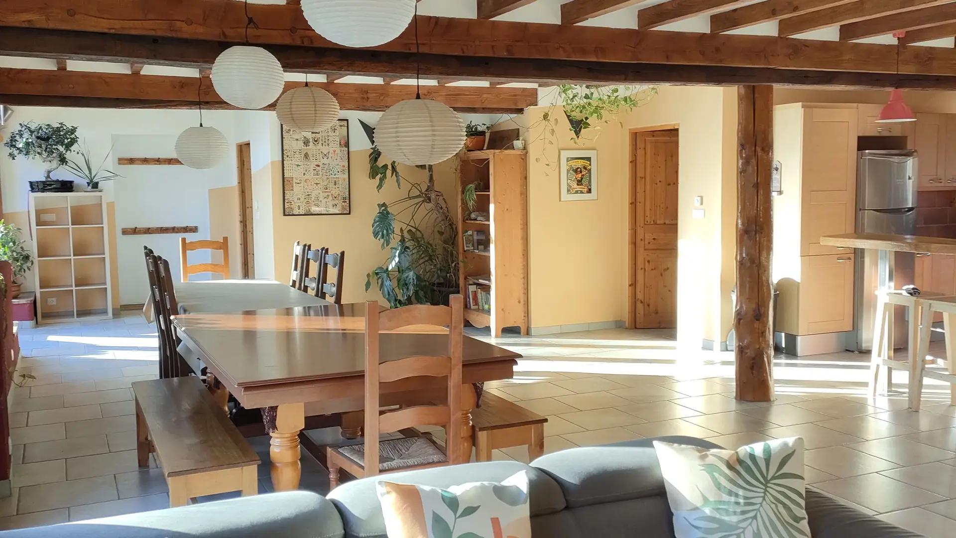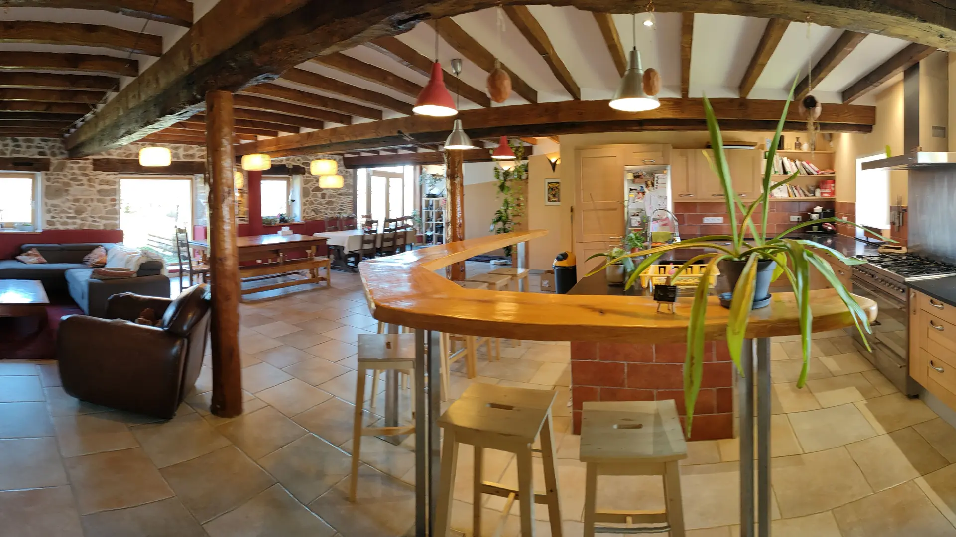 Au croisement du GR et des chemins de randonnée, à flanc de montagne, intimement entouré de verdure et d’un joli terrain non clôturé, notre gîte mitoyen (avec les propriétaires) peut accueillir jusqu'à 15 personnes. Sa pièce de vie spacieuse, ses extérieurs et l'orientation sud du gîte, ensoleillés du matin au soir, offrent une magnifique vue sur la chaîne des Puys. Il est possible d'ajouter 5 personnes supplémentaires dans notre petit gîte situé à côté du grand. Les chiens ne sont acceptés que dans le petit gîte.