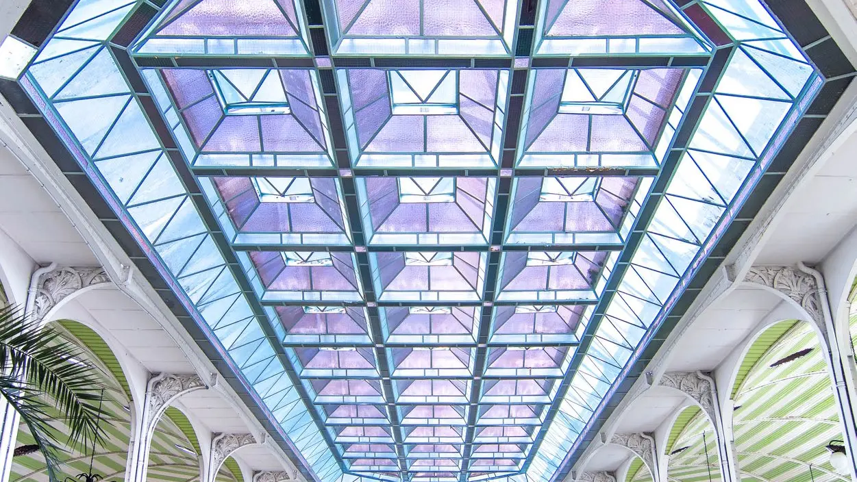 Ouvert, aéré et lumineux, ce hall s’appuie sur une architecture métallique sublimée par le ferronnier Émile Robert qui dessine d’élégantes grilles de clôture de style Art nouveau et reproduit ici les chardons de la galerie promenoir.