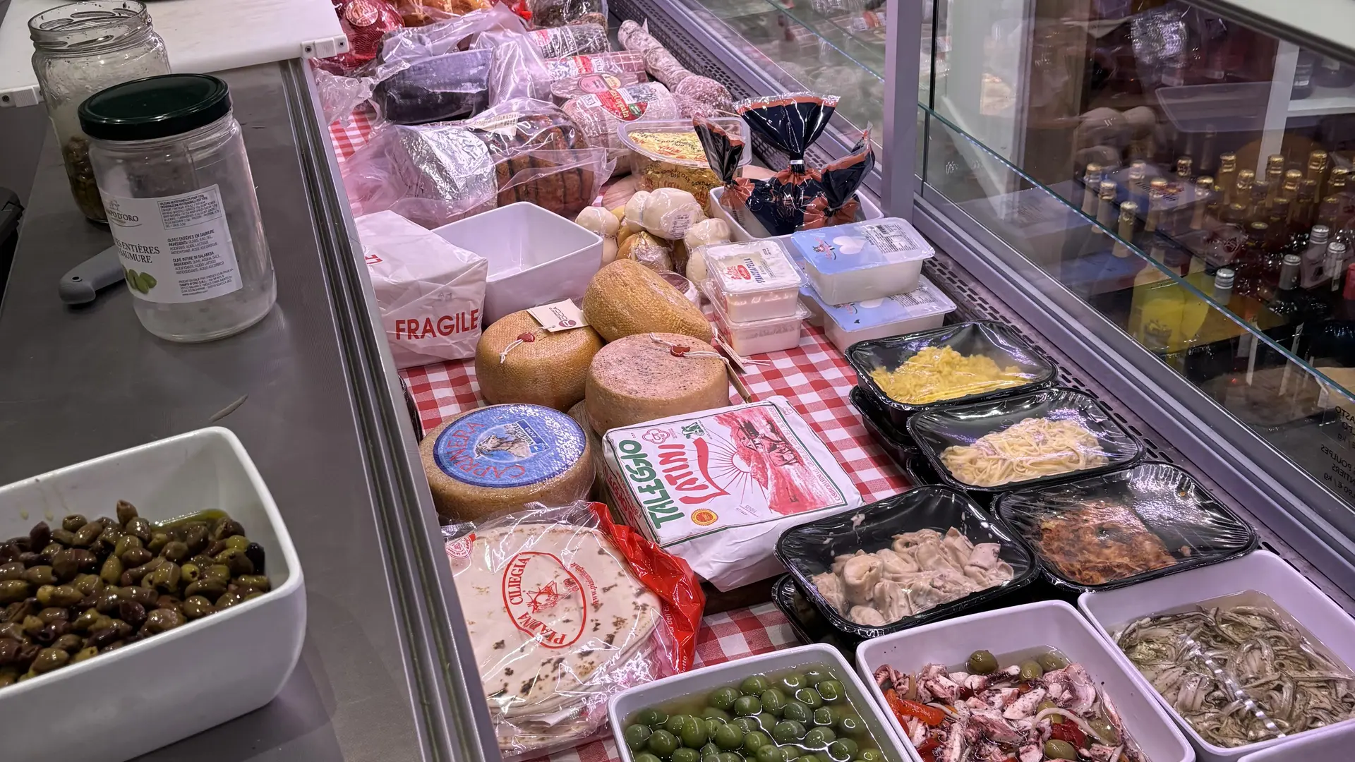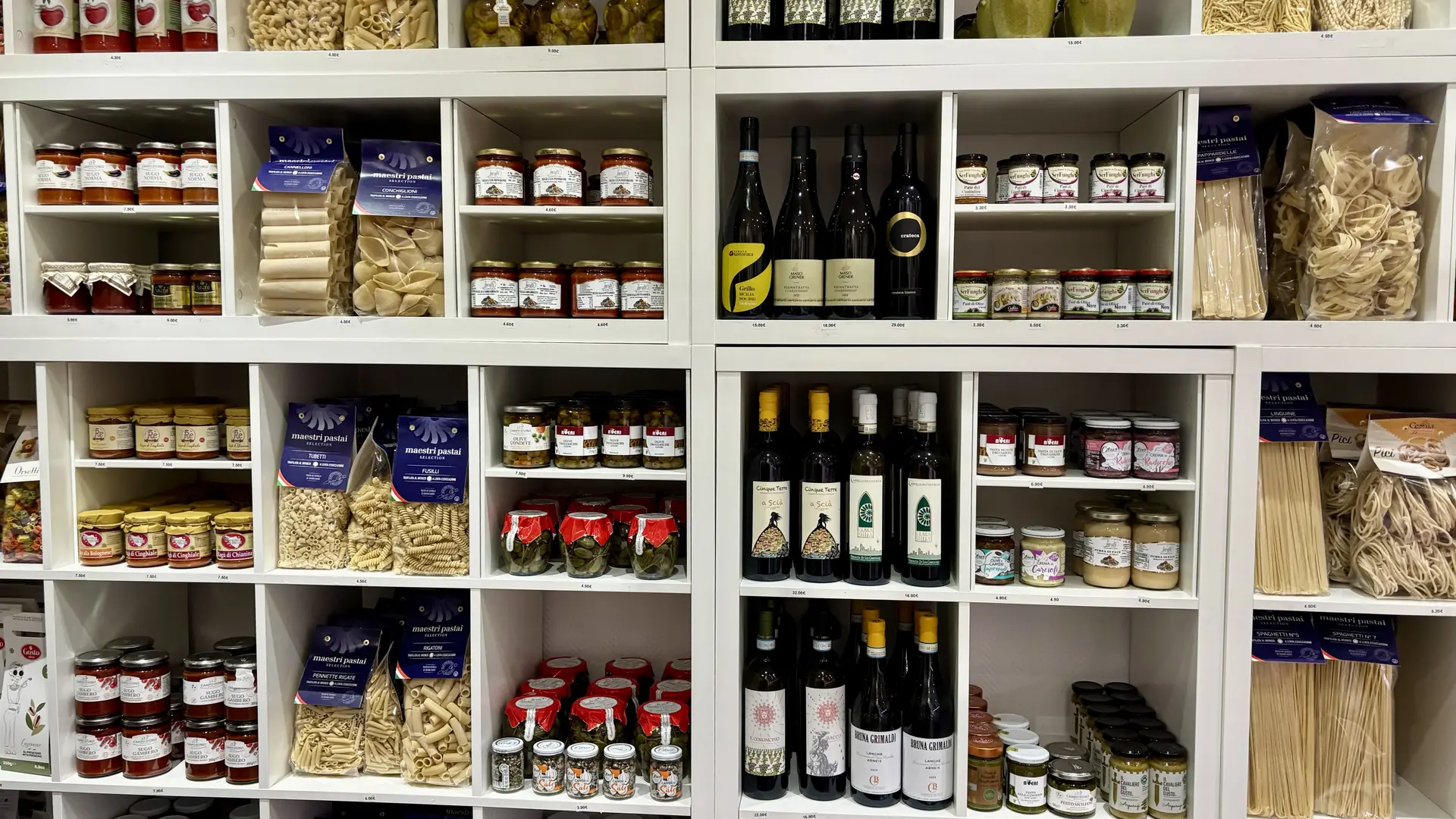 Notre épicerie est un véritable voyage culinaire à travers les régions d’Italie. Chaque produit est rigoureusement sélectionné auprès de petits producteurs locaux, avec qui nous entretenons une relation de confiance. Vous y trouverez des charcuteries artisanales d’exception (prosciutto di Parma, mortadella, speck...), des fromages traditionnels comme le Parmigiano Reggiano affiné 36 mois, la burrata des Pouilles ou encore la mozzarella di bufala, ainsi qu’une large gamme de produits d’épicerie fine : pâtes artisanales, sauces, risottos, huiles d’olive, vinaigres balsamiques, antipasti, biscuits et douceurs typiques. Tous nos produits sont choisis pour leur goût, leur qualité et leur authenticité.
