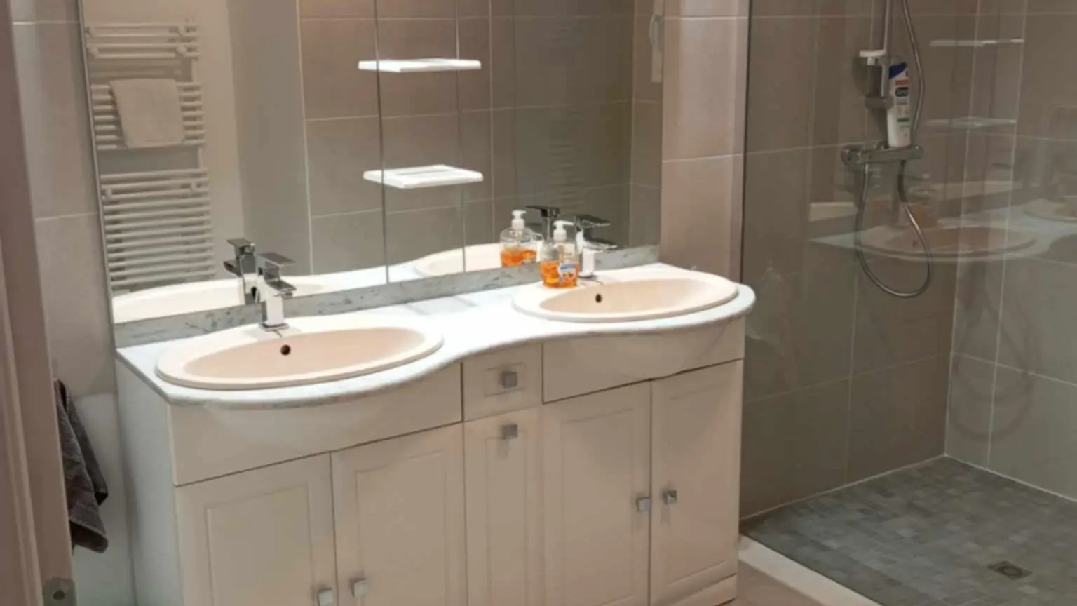Salle de bain avec douche à l’italienne , double vasque + WC séparé