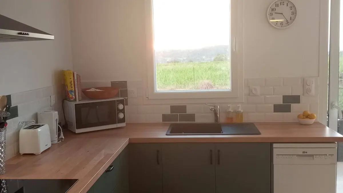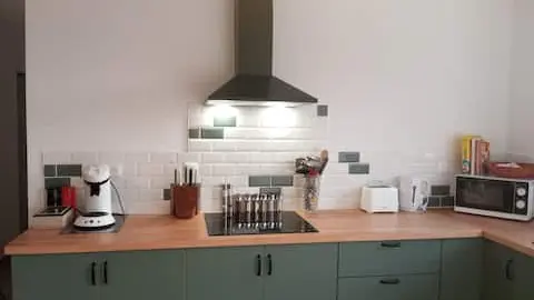 Cuisine moderne entièrement équipée (four, micro-ondes, lave-vaisselle, cafetière, etc.)