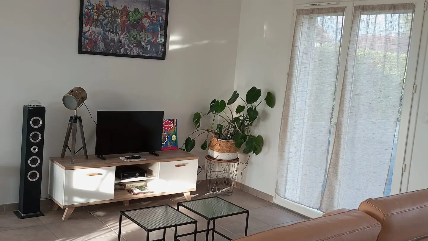 Grand salon avec canapé, TV