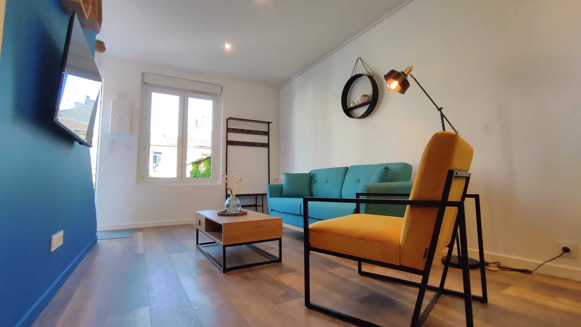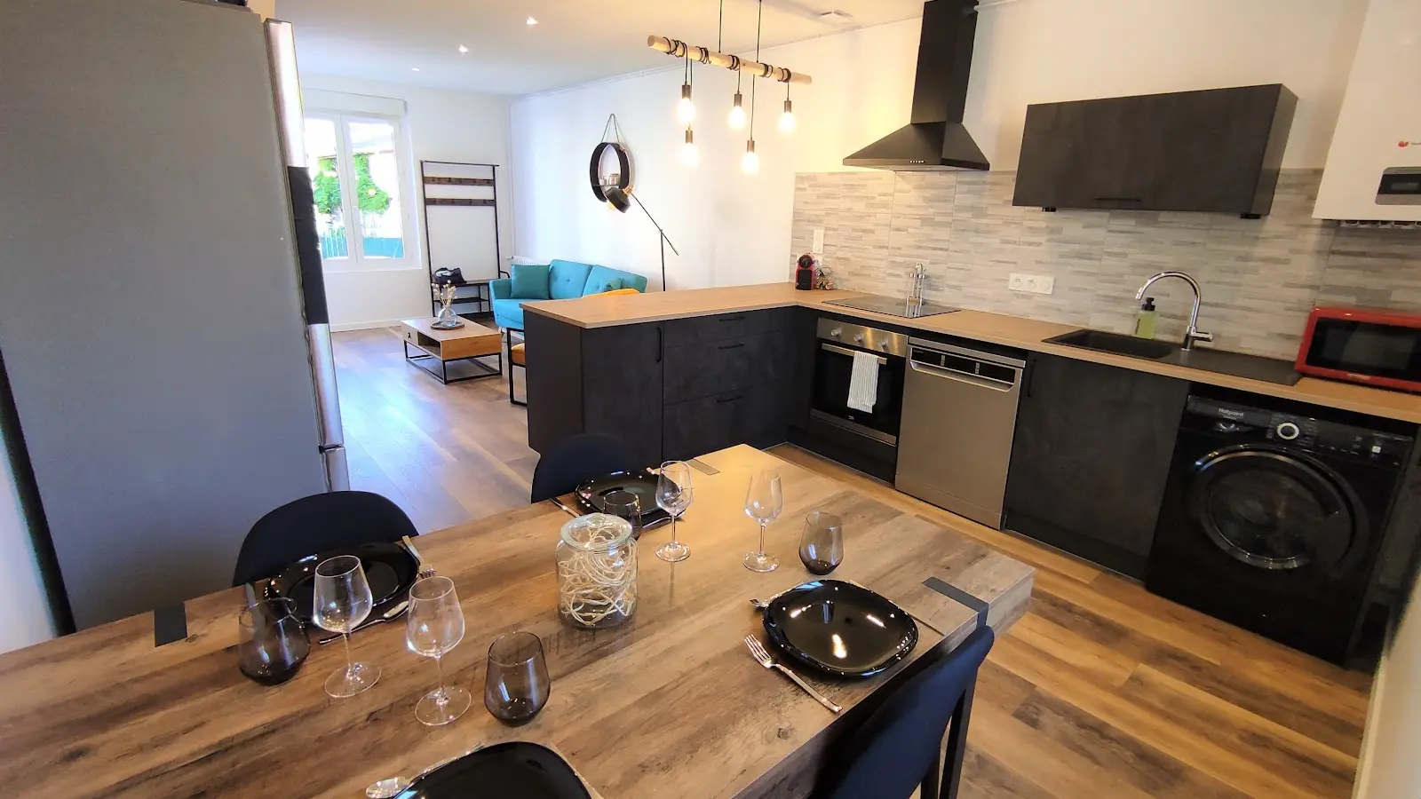 Au rez-de-chaussée, vous découvrirez un espace salon-séjour avec une télévision connectée Qled, un accès Wifi, ainsi qu'une cuisine entièrement équipée
