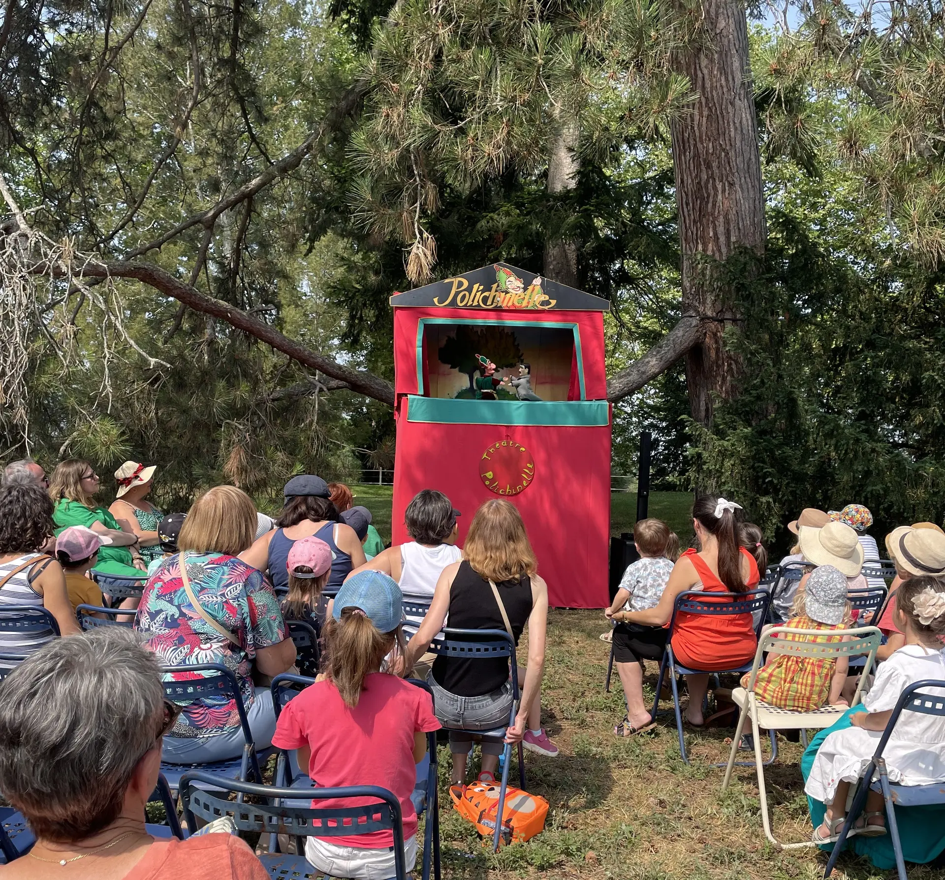 Dans un castelet décoré, les spectateurs petits et grands peuvent découvrir ou redécouvrir le personnage de Polichinelle.