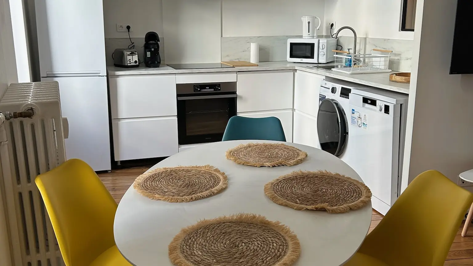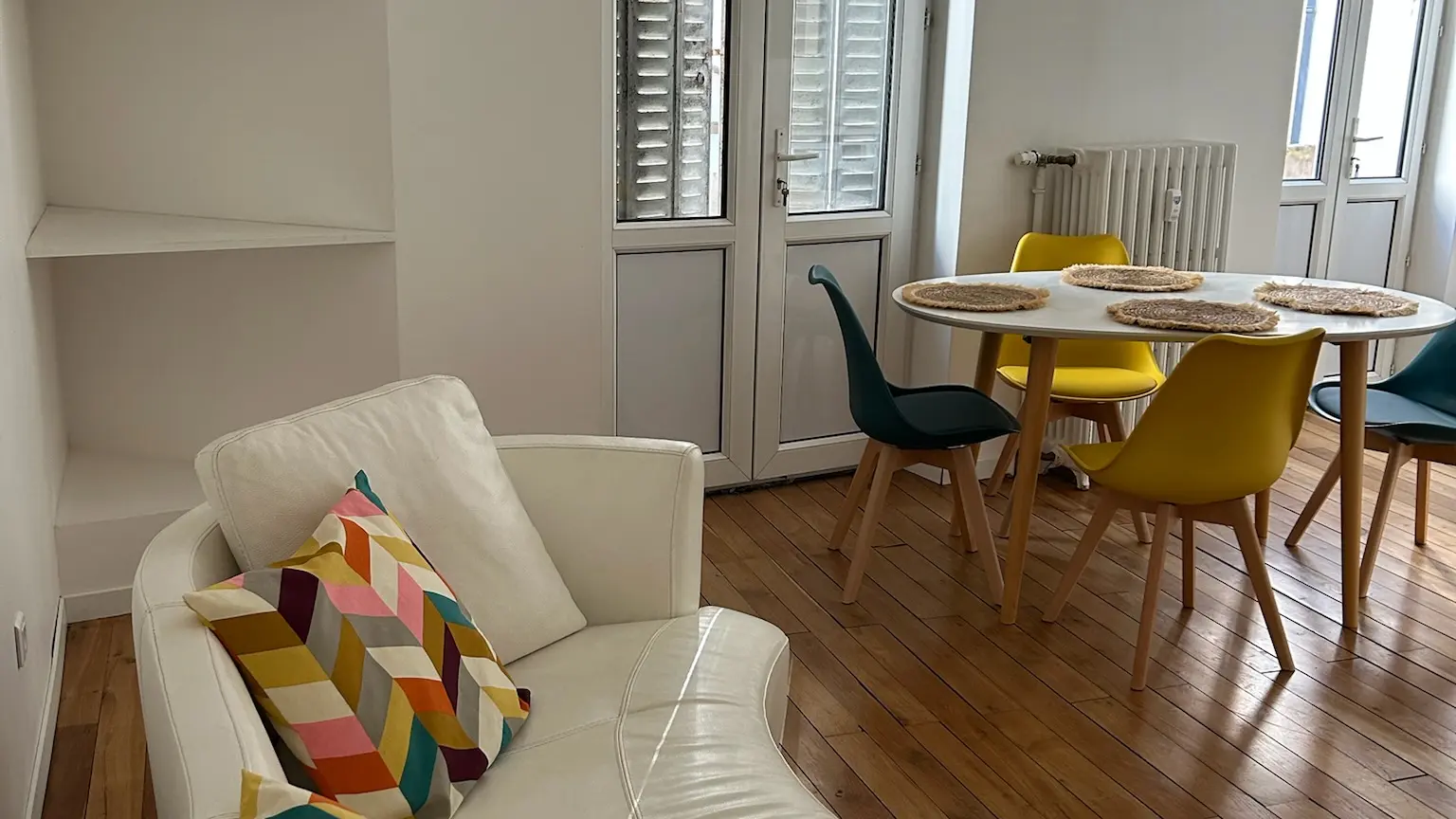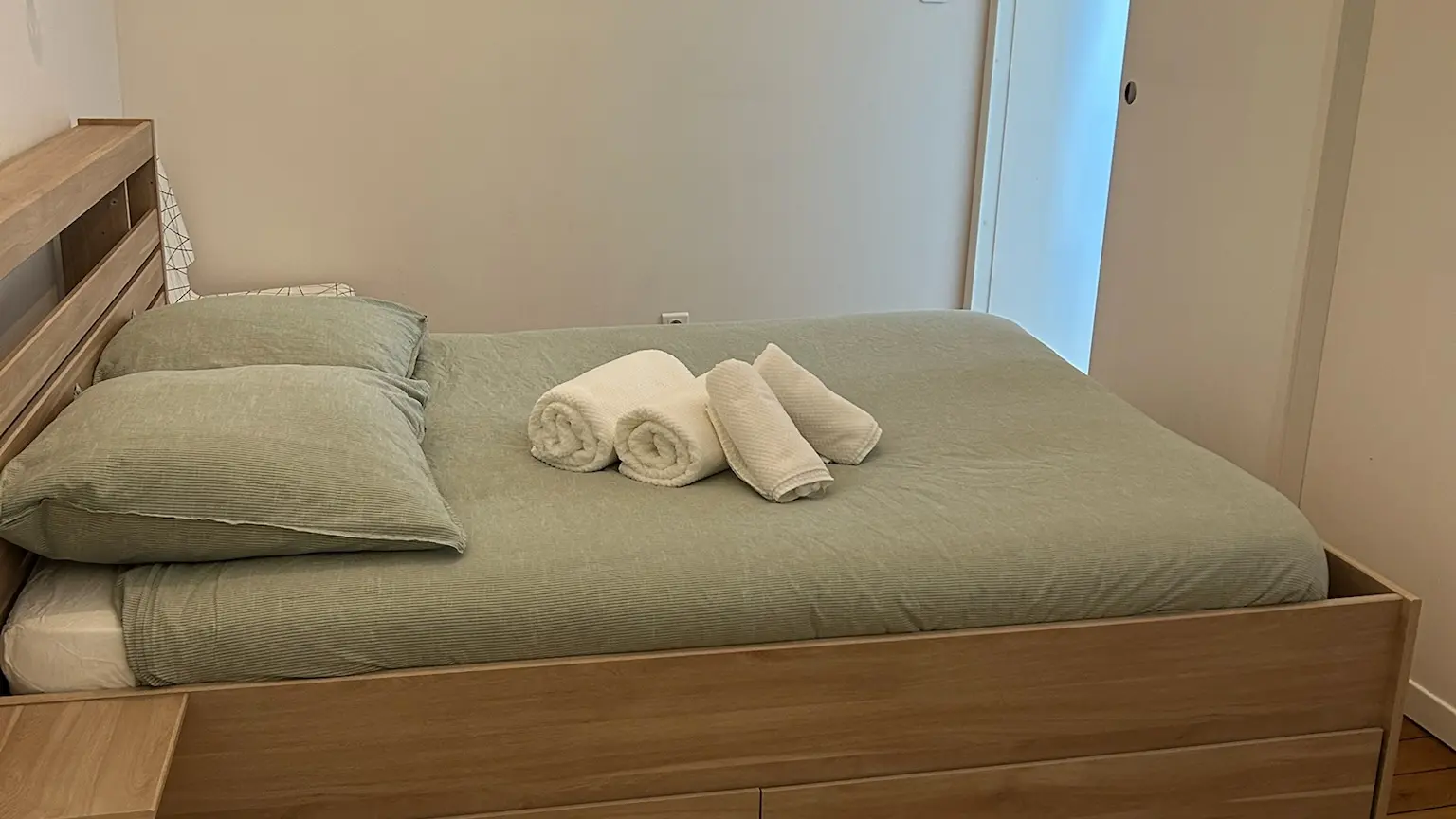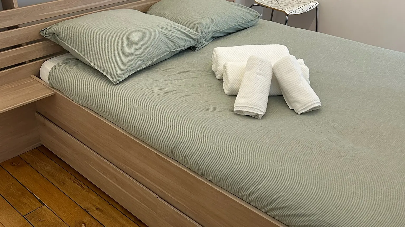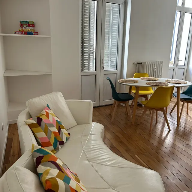 Il est lumineux et agréable avec ses parquets d’époque. Il convient parfaitement aux couples, aux personnes seules et aux familles de 4, tout particulièrement à ceux qui ont des petits ; nous avons deux lits parapluie à disposition, une baignoire bébé, une chaise haute, des jouets pour bébé.