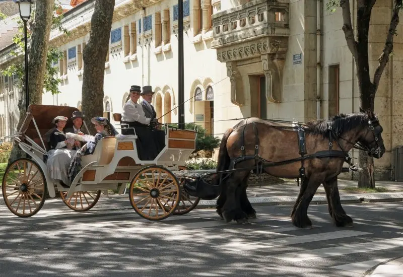 Montez à bord d’une calèche vis-à-vis pour une promenade commentée au rythme des chevaux en centre-ville et en bordure des parcs à la découverte de l’architecture Napoléon III à Vichy.